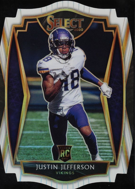 The Justin Jefferson 2020 Select #161 Premier Level White Die-Cut Rookie card in Raw condition has moved up $3.99 (+24.9%) in the last 30 days and was last sold for $19.99 .