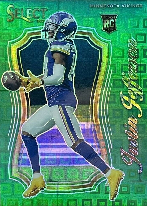 The Justin Jefferson 2020 Select #9 Select Certified Rookies - Green /5 card in Raw condition has not changed in price in the last 30 days and was last sold for $576.64 .