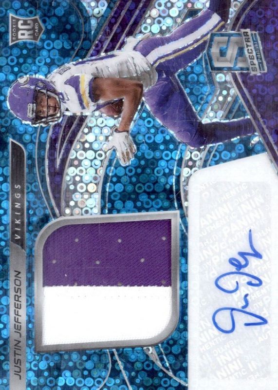 2020 Panini Spectra Justin Jefferson Rookie Patch Auto /60 Neon Blue