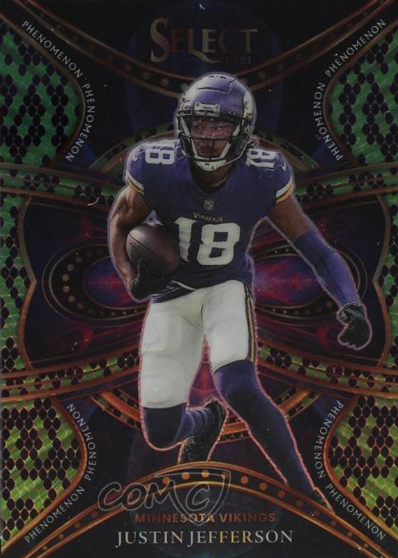 Justin Jefferson 2021 Select #PHE-23 Phenomenon - Green & Black Snakeskin /2 RAW Price Guide