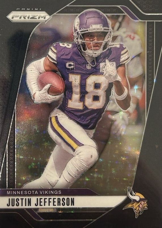 This card is 1 of 101 Justin Jefferson's card variations in the 2024 Prizm set being tracked by Sports Card Investor, including Base, Choice Blue Yellow Green, Choice Silver, Disco, and Green.