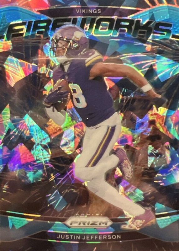 JUSTIN JEFFERSON 2024 PRIZM FOOTBALL BLUE ICE FIREWORKS /99 BEAUTIFUL!!