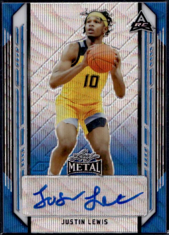 The Justin Lewis 2021 Leaf Metal #BA-JL1 Blue Wave /30 card is 1 of 88 Justin Lewis' card variations in the 2021 Leaf Metal set being tracked by Sports Card Investor, including Base, Silver Crystal, Silver Mojo, Silver Wave, and Blue Rainbow /50.