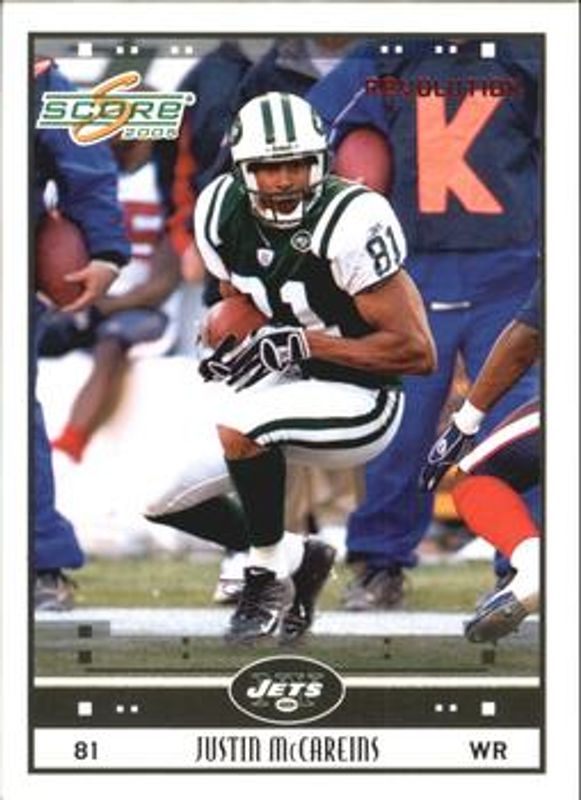 The Justin McCareins 2005 Score #197 Revolution /199 card is 1 of 6 Justin McCareins' card variations in the 2005 Score set being tracked by Sports Card Investor, including Base, Glossy, Scorecard /599, Adrenaline /399, and Final Score /17.