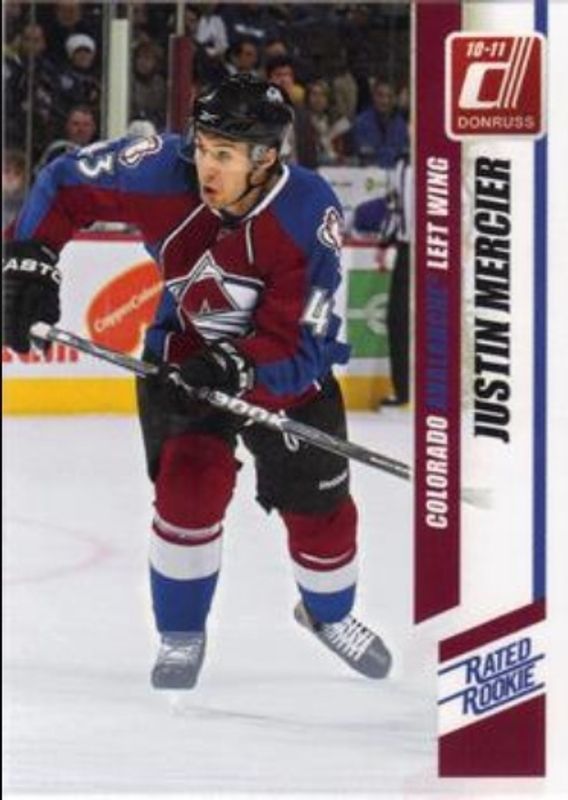 The Justin Mercier 2010 Donruss #264a Base Rookie card is 1 of 3 Justin Mercier's card variations in the 2010 Donruss set being tracked by Sports Card Investor, including Base, and Rated Rookies Autographs /100.