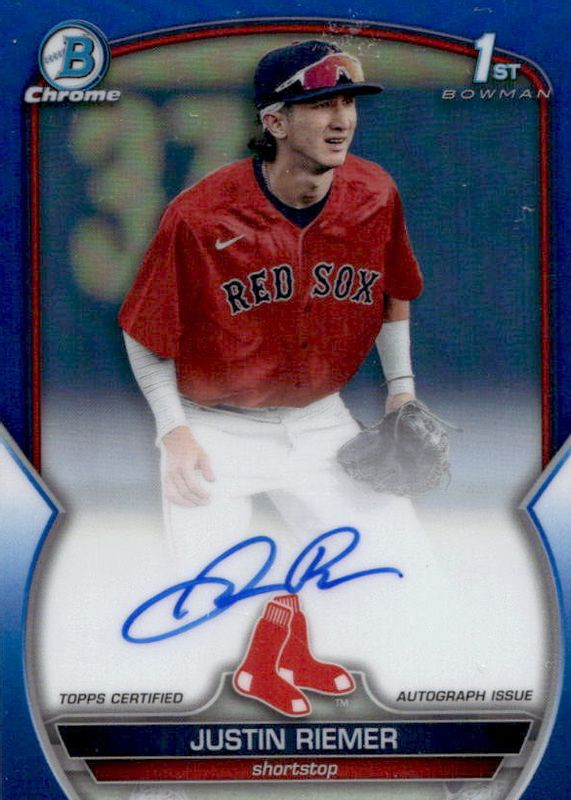 Auctions Ending Soon for Justin Riemer 2023 Bowman Draft #CDA-JRI Chrome Prospect Auto - Blue Refractor /150 (1st) RAW