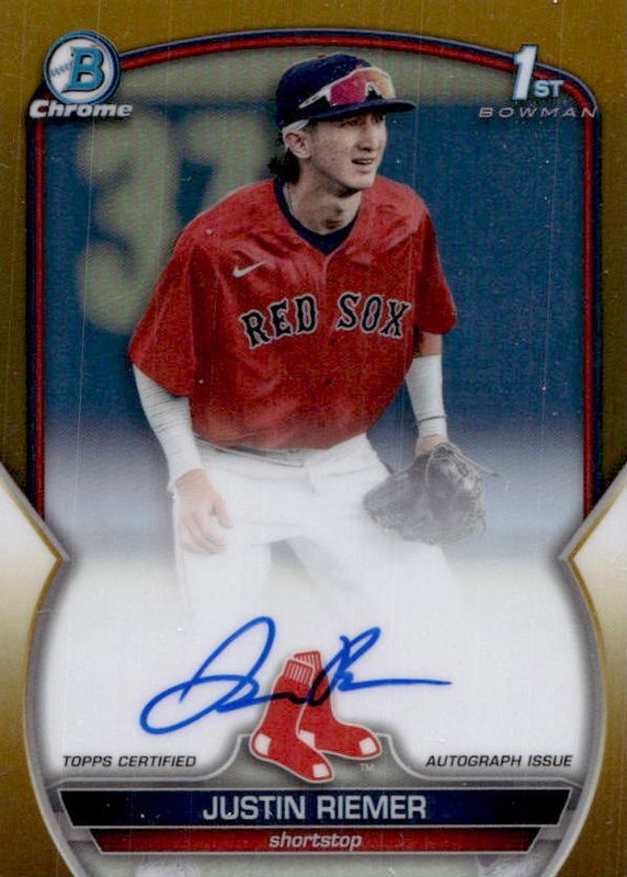 Justin Riemer 2023 Bowman Draft Chrome CDA-JRI True Gold Auto /50 Red Sox