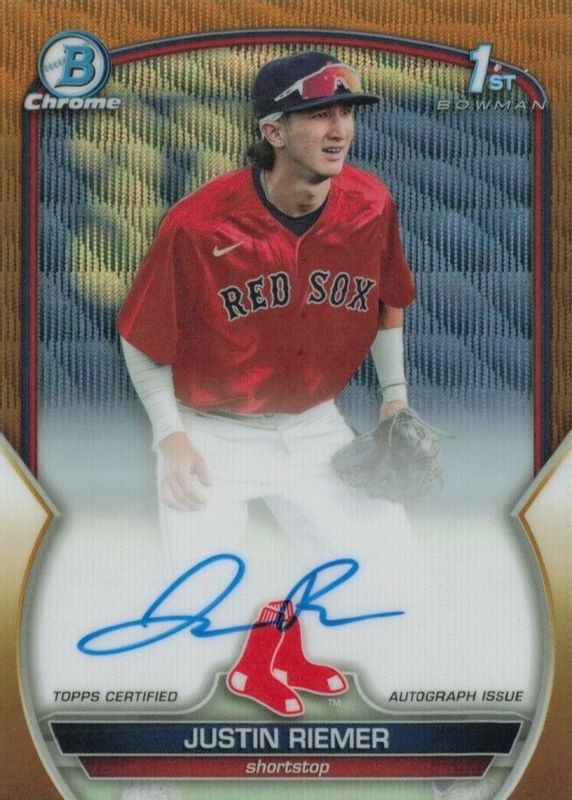 2023 Bowman Draft Chrome Justin Riemer #CDA-JRI Gold Wave Auto /50 Red Sox