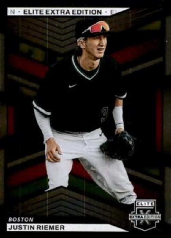 The Justin Riemer 2023 Elite Extra Edition #52 Base card is 1 of 39 Justin Riemer's card variations in the 2023 Elite Extra Edition set being tracked by Sports Card Investor, including Pink, Signatures, Status Green /499, Signatures die-cut /399, and Aspirations Blue /349.