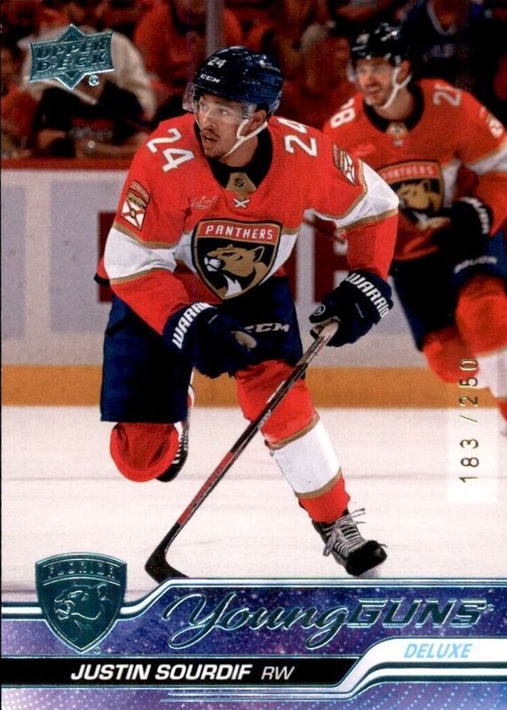 The Justin Sourdif 2023 Upper Deck #471 Young Guns - Deluxe /250 Rookie card in Raw condition has not changed in price in the last 30 days and was last sold for $9.17 .