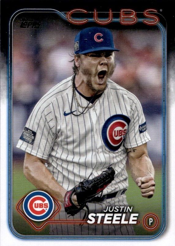 This card is 1 of 2 Justin Steele's card variations in the 2024 Topps set being tracked by Sports Card Investor, including Team Color Border Variation /(SSP).