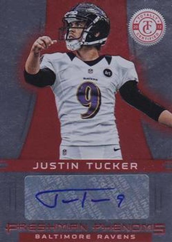 Justin Tucker's Football cards are available in at least 52 sets. Justin Tucker's biggest 7-day price movers are 2012 Totally Certified #148 Platinum Red /199, 2012 Totally Certified #148 Platinum Blue /99, and 2012 Totally Certified #148 Platinum Black /1.