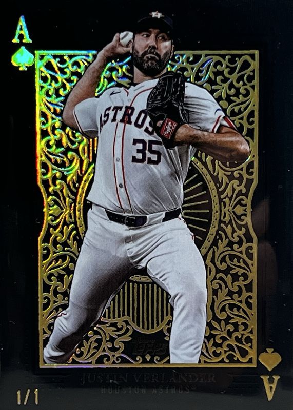 The Justin Verlander 2025 Topps #AA-11 All Aces - Gold /1 card in Raw condition has not changed in price in the last 30 days and was last sold for $1,500.00 .