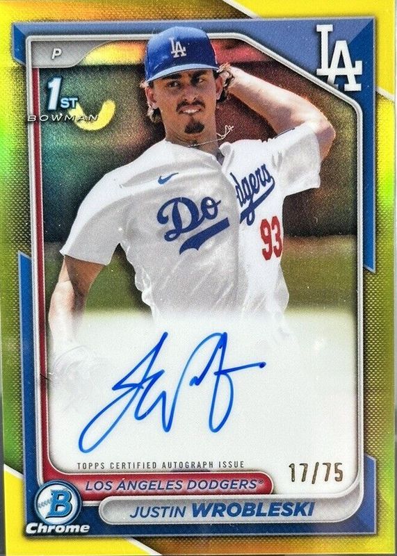 2024 1ST BOWMAN CHROME PRSPCT AUTO YELLOW REFRACTOR JUSTIN WROBLESKI /75 DODGERS
