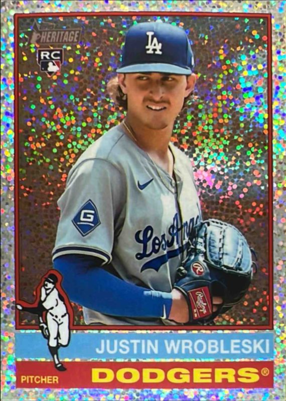 The Justin Wrobleski 2025 Topps Heritage #319 Chrome - Silver Sparkle Refractor Rookie card is 1 of 24 Justin Wrobleski's card variations in the 2025 Topps Heritage set being tracked by Sports Card Investor, including Base, Black Border, Dark Blue Border, Dark Green Border, and Dark Yellow Border.