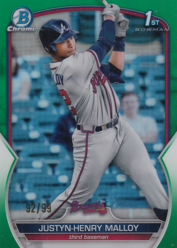 Justyn-Henry Malloy 2023 Bowman #BCP-51 Chrome Prospects - Green Refractor /99 (1st) RAW Price Guide