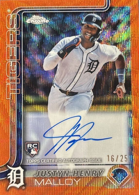 Auctions Ending Soon for Justyn-Henry Malloy 2025 Topps Chrome #RA-JM Rookie Autographs - Orange Wave Refractor /25 RAW