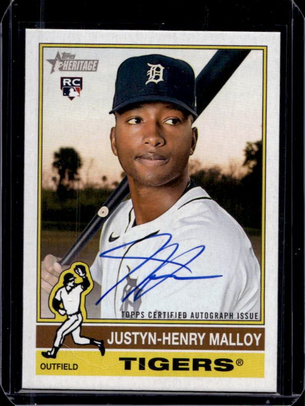 The Justyn-Henry Malloy 2025 Topps Heritage #ROA-JMAL Real One Autographs Rookie card is 1 of 26 Justyn-Henry Malloy's card variations in the 2025 Topps Heritage set being tracked by Sports Card Investor, including Base, Black Border, Dark Blue Border, Dark Green Border, and Dark Yellow Border.