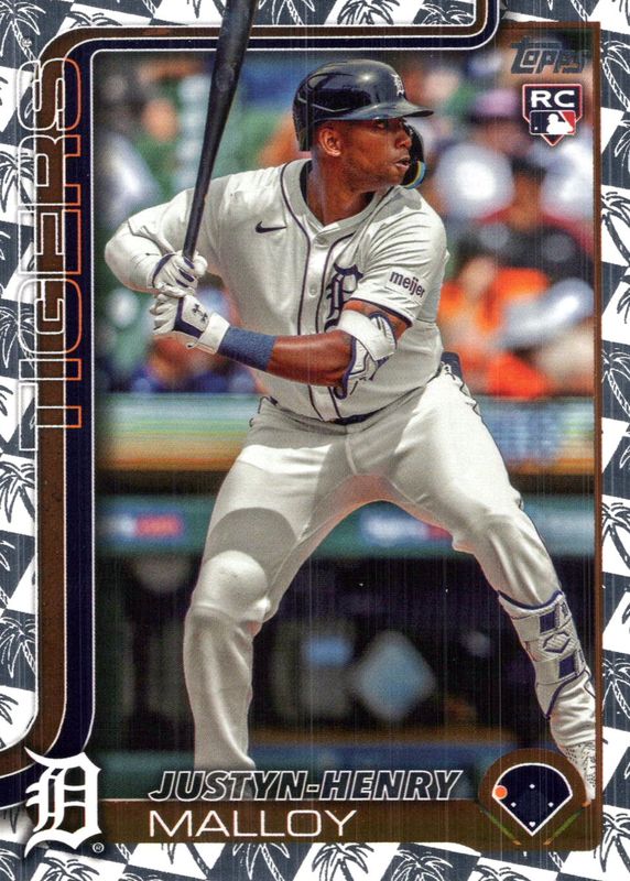 This card is 1 of 140 Justyn-Henry Malloy's card variations in the 2025 Topps set being tracked by Sports Card Investor, including Base, Aqua Holo Foil, Aqua Rainbow, Diamante Foil, and Eggs.