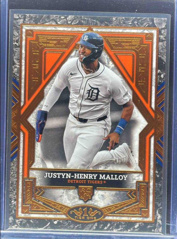 The Justyn-Henry Malloy 2025 Topps Tier One #95 Base Tier 3 Rookie card is 1 of 29 Justyn-Henry Malloy's card variations in the 2025 Topps Tier One set being tracked by Sports Card Investor, including Base Tier 3 - Bronze Foil, Break Out Autographs, Base Tier 3 Autographs /199, Base Tier 3 - Blue Foil /125, and Autographed Tier One Relics /99.