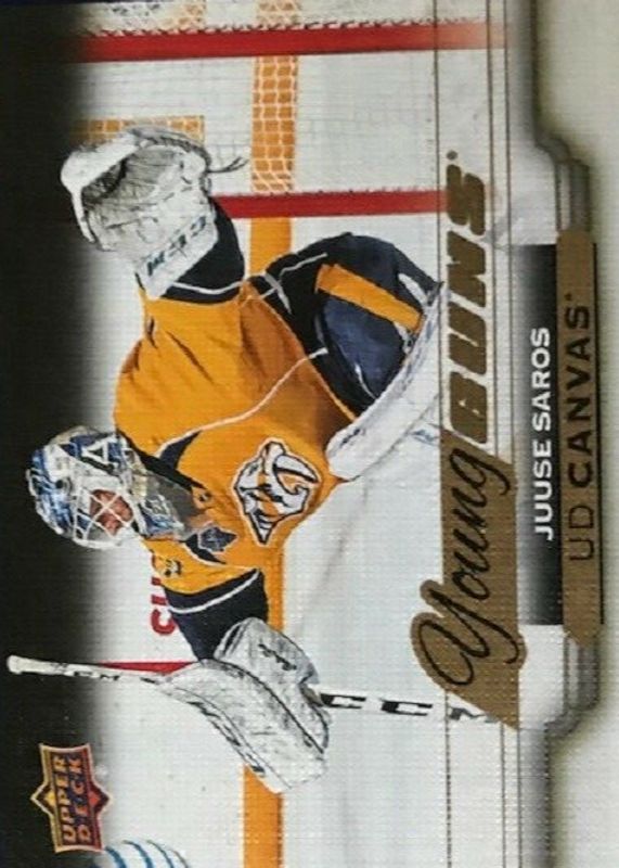 The Juuse Saros 2015 Upper Deck #C219 Young Guns Canvas Rookie card in Raw condition has moved up $3.18 (+36.1%) in the last 30 days and was last sold for $12.00 .