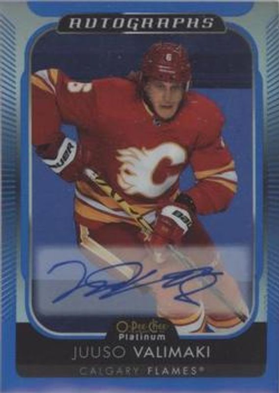 The Juuso Valimaki 2021 O-Pee-Chee Platinum #BA-JV Autographs Blue Rainbow card is 1 of 3 Juuso Valimaki's card variations in the 2021 O-Pee-Chee Platinum set being tracked by Sports Card Investor, including #R-93 2018 O-Pee-Chee Platinum Update, and #R-JV 2018 O-Pee-Chee Platinum Update.