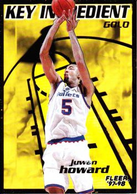 The Juwan Howard 1997 Fleer #4 Key Ingredient - Gold card is 1 of 11 Juwan Howard's card variations in the 1997 Fleer set being tracked by Sports Card Investor, including #207 Base, #125 Base, #125 Crystal, #207 Crystal, and #207 Tiffany.
