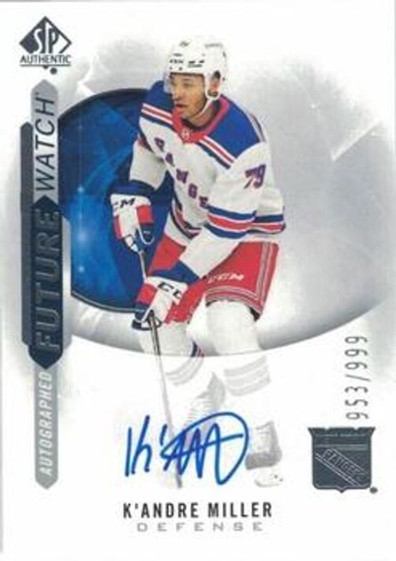 The K'Andre Miller 2020 SP Authentic #209 Base /999 Rookie card is 1 of 11 K'Andre Miller's card variations in the 2020 SP Authentic set being tracked by Sports Card Investor, including Black Gold Ink, Future Watch Acetate, 2020 Upper Deck Young Guns Acetate, Spectrum FX, and Future Watch Auto /999.
