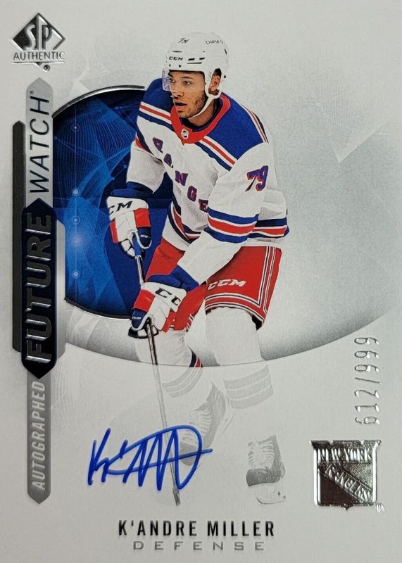2020-21 SP Authentic K'Andre Miller RC Auto Future Watch #435/999 Rangers