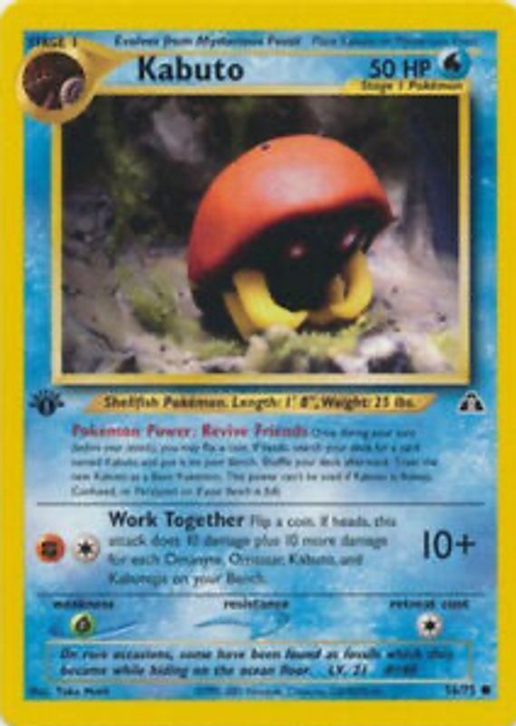 Vintage Pokémon Neo Discovery Kabuto 1st Edition 56/75 Common NM/Mint