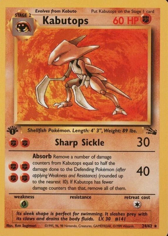 Kabutops - 24/62 - Pokemon Fossil 1st Edition Rare Card WOTC mp