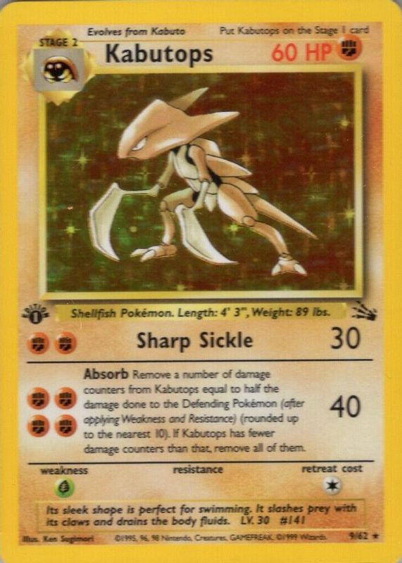 Best Prices Available For Sale of Kabutops 1999 Fossil #09/62 1st Edition Holo
