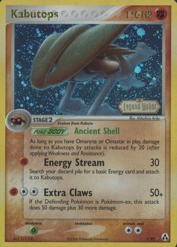 Pokémon TCG Reverse Holo Kabutops 7/92 EX Legend Maker Stamped MINT/NM 2006