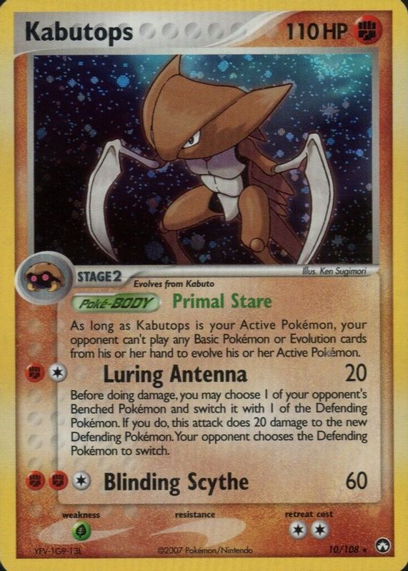 The Kabutops 2007 EX: Power Keepers #010/108 Holo card in Raw TCG (Near Mint) condition has moved up $2.99 (+29.9%) in the last 30 days and was last sold for $12.99 .