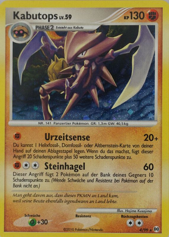 The Kabutops 2009 Platinum: Arceus #04/99 Holo card in Raw TCG (Near Mint) condition has not changed in price in the last 30 days and was last sold for $5.00 .
