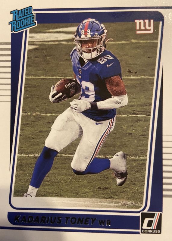 This card is 1 of 23 Kadarius Toney's card variations in the 2021 Donruss set being tracked by Sports Card Investor, including Base, No Name, Portrait, Press Proof Blue, and Press Proof Bronze.
