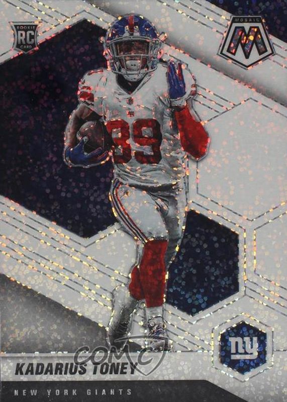 The Kadarius Toney 2021 Mosaic #312 White Sparkle /(SSP) Rookie card in Raw condition has not changed in price in the last 30 days and was last sold for $67.65 .