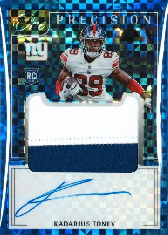 This card is 1 of 14 Kadarius Toney's card variations in the 2021 One set being tracked by Sports Card Investor, including Precision Rookie Patch Autographs (/49), Precision Rookie Patch Autographs - Bronze (/25), Precision Rookie Patch Autographs - Gold (/15), Precision Rookie Patch Autographs - Red (/20), and Rookie Patch Auto (/99).