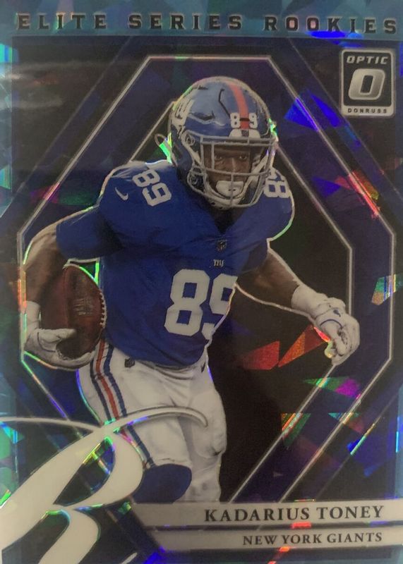 The Kadarius Toney 2021 Optic #ESR-11 The Elite Series Rookies - Ice /15 card in Raw condition has not changed in price in the last 30 days and was last sold for $6.99 .