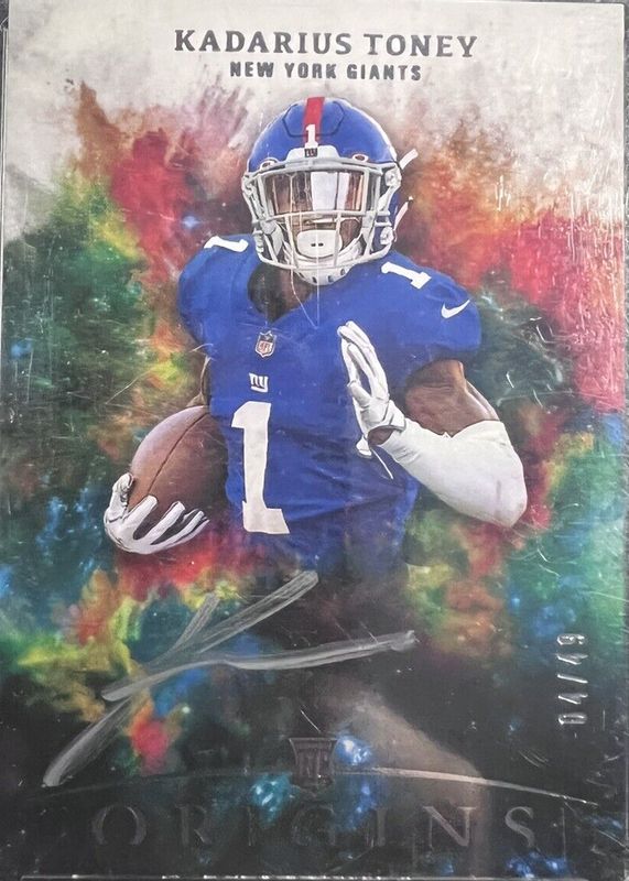 The Kadarius Toney 2021 Origins #OA-KT Origins Autographs - Silver Ink (/49) Rookie card in Raw condition has not changed in price in the last 30 days and was last sold for $5.01 .