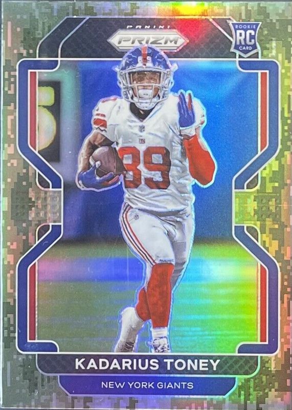 This card is 1 of 72 Kadarius Toney's card variations in the 2021 Prizm set being tracked by Sports Card Investor, including Base, Disco, Green, Green Ice, and Lazer.