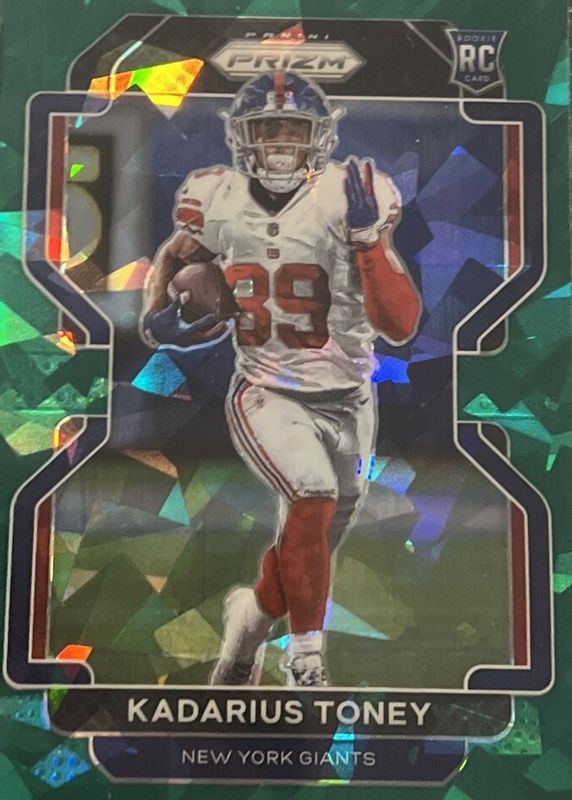 The Kadarius Toney 2021 Prizm #342 Green Ice Rookie card in Raw condition has not changed in price in the last 30 days and was last sold for $31.30 .