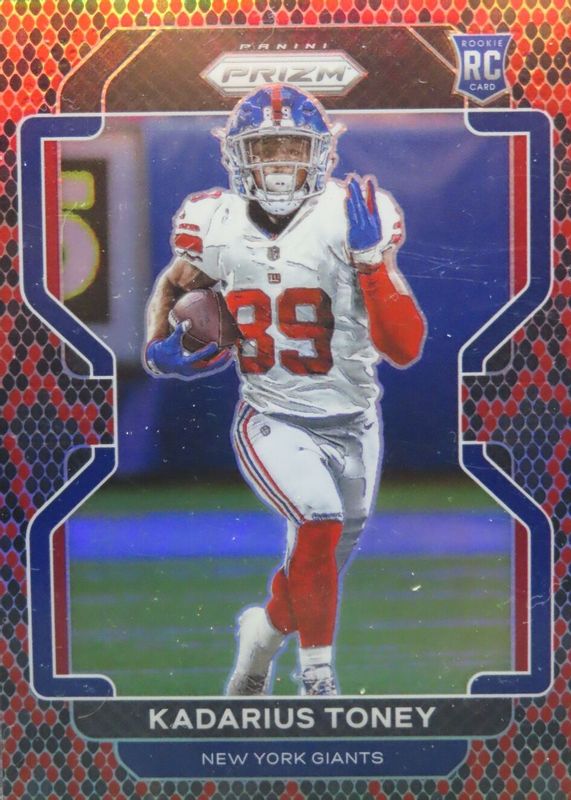 The Kadarius Toney 2021 Prizm #342 Snakeskin /(SSP) Rookie card in Raw condition has not changed in price in the last 30 days and was last sold for $150.00 .