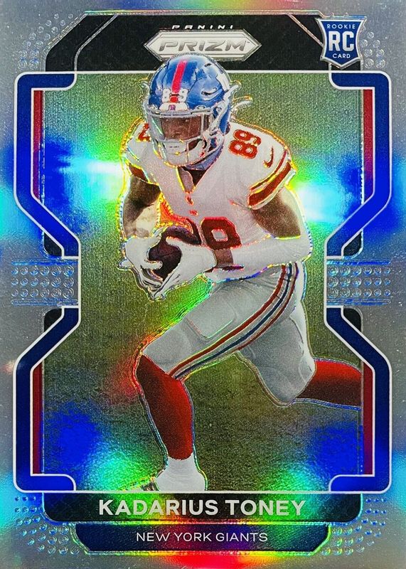 This card is 1 of 72 Kadarius Toney's card variations in the 2021 Prizm set being tracked by Sports Card Investor, including Base, Disco, Green, Green Ice, and Lazer.