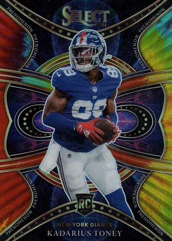The Kadarius Toney 2021 Select #PHE-24 Phenomenon - Tie-Dye /25 Rookie card in Raw condition has not changed in price in the last 30 days and was last sold for $38.00 .