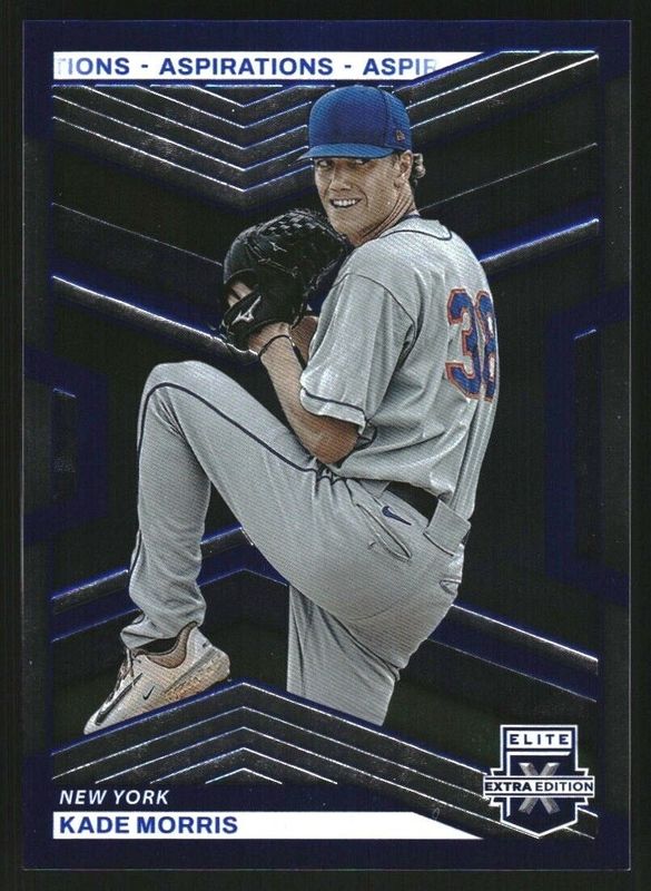 The Kade Morris 2023 Elite Extra Edition #62 Aspirations Blue /349 card is 1 of 42 Kade Morris' card variations in the 2023 Elite Extra Edition set being tracked by Sports Card Investor, including Base, Pink, Signatures, Status Green /499, and Signatures die-cut /399.