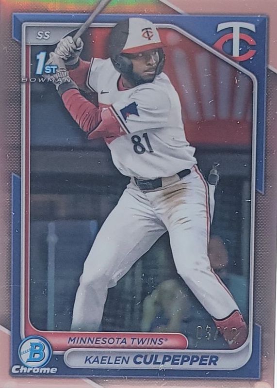 The Kaelen Culpepper 2024 Bowman Draft #BDC-98 Chrome - Rose Gold Refractor /10 (1st) card in Raw condition has not changed in price in the last 30 days and was last sold for $90.51 .