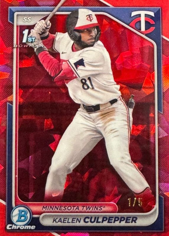 The Kaelen Culpepper 2024 Bowman Draft Sapphire Edition #BDC-98 Chrome - Red /5 (1st) card in Raw condition has not changed in price in the last 30 days and was last sold for $340.00 .