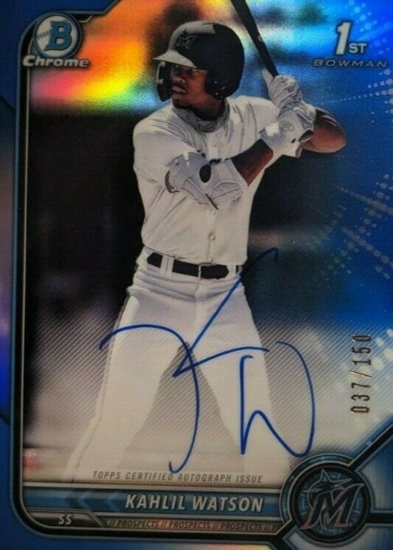 Auctions Ending Soon for Kahlil Watson 2022 Bowman #CPA-KW Chrome Prospect Auto - Blue Refractor /150 (1st) RAW