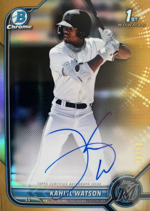 Best Prices Available For Sale of Kahlil Watson 2022 Bowman #CPA-KW Chrome Prospect Auto - Gold Refractor /50 (1st)